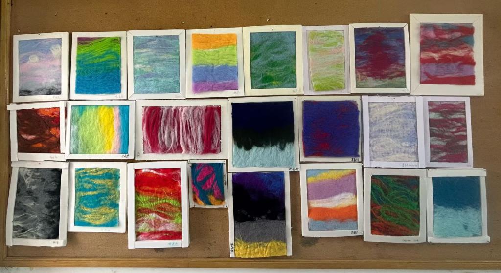 课程作业要求学生完成一块羊毛毡制作、三块面料创新改造设计以及相应的针织服装设计效果图,以此检验学生对服装面料塑形与应用的掌握程度,以及对服装材料的创新应用能力。