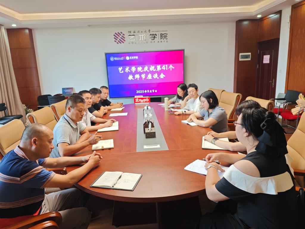 秋韵荡漾,硕果盈枝。在第41个教师节来临之际,为弘扬尊师重教优良传统,激励全院教师践行教育家精神,投身教育强国伟大实践,9月9日上午,艺术学院在博雅楼会议室举办第十期“艺周思享绘”暨庆祝第41个教师节座谈会。学院党委书记黄敬秀,院长孙远志,副院长周屹、黄建标出席会议,会议由学院党委副书记黄传伟主持,教师代表参加会议。