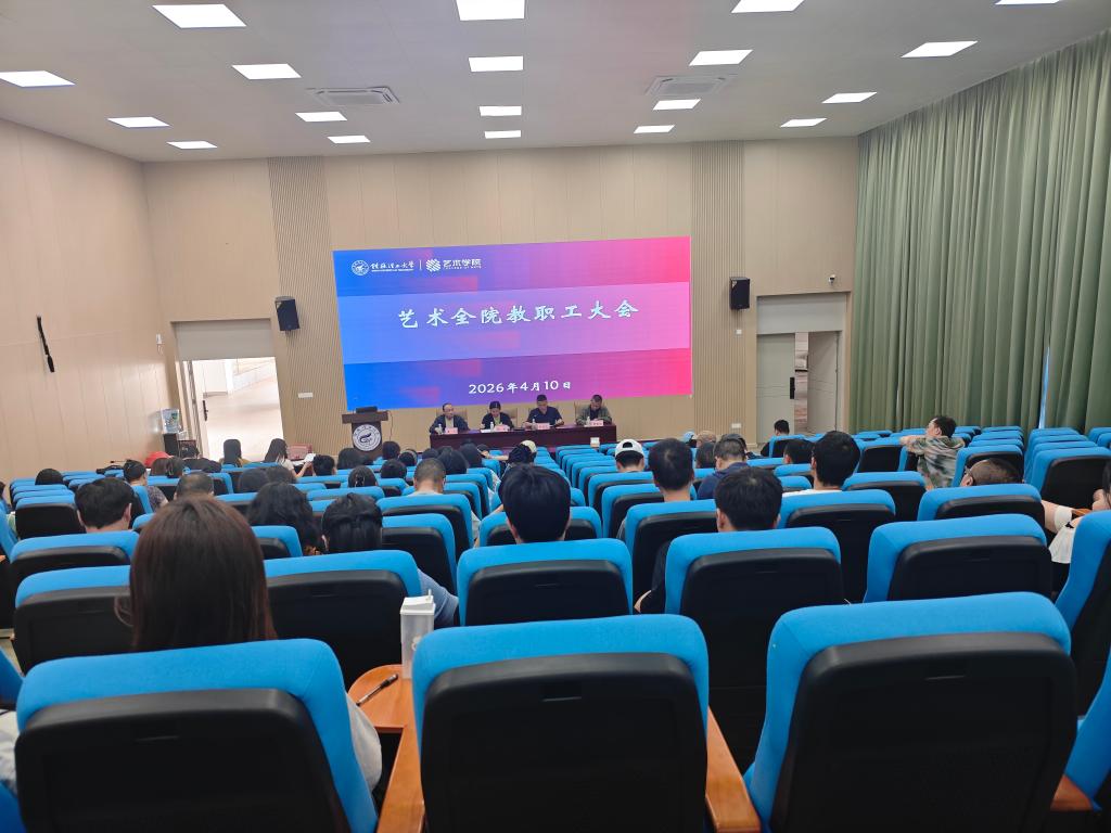 熊英作总结讲话。她强调,全体教职工要持续深化理论学习,坚持学思用贯通、知信行统一,切实把学习成果转化为推动学院发展的实际行动;她指出,要主动适应学院发展新形势、新要求,严格落实各项工作部署,规范履职行为;同时希望全体教职工凝心聚力、锐意进取,共同推动艺术学院教育教学、学科建设、队伍建设等各项工作再上新台阶。