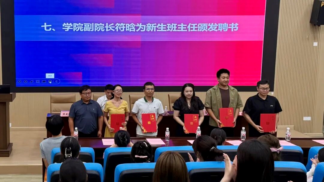在新生见面会上,学院党委书记黄敬秀代表学院党委和全体师生向新同学表示热烈欢迎和诚挚祝贺。他结合党的基本理论知识、为什么要入党和入党程序三个方面,教育同学们要坚定理想信念、厚植家国情怀,主动适应变化、全面发展能力,明确成才方向、树立远大志向。最后,他从德、智、体、美、劳五个方面对同学们提出殷切希望:要以磨石成玉的恒心勤于修德,涵养高尚品格;以海绵吸水的虚怀善于学习,提升智慧能力;以百炼成钢的毅力勇于锻炼,锤炼健康身心;以临池不辍的韧劲精于学艺,厚植专业底蕴;以蜜蜂采蜜的欢欣乐于劳动,创造幸福人生。他勉励同学们积极向党组织靠拢,努力成长为德才兼备的时代新人。