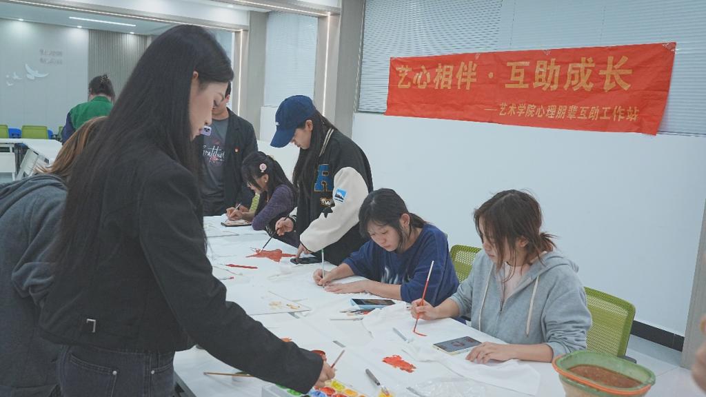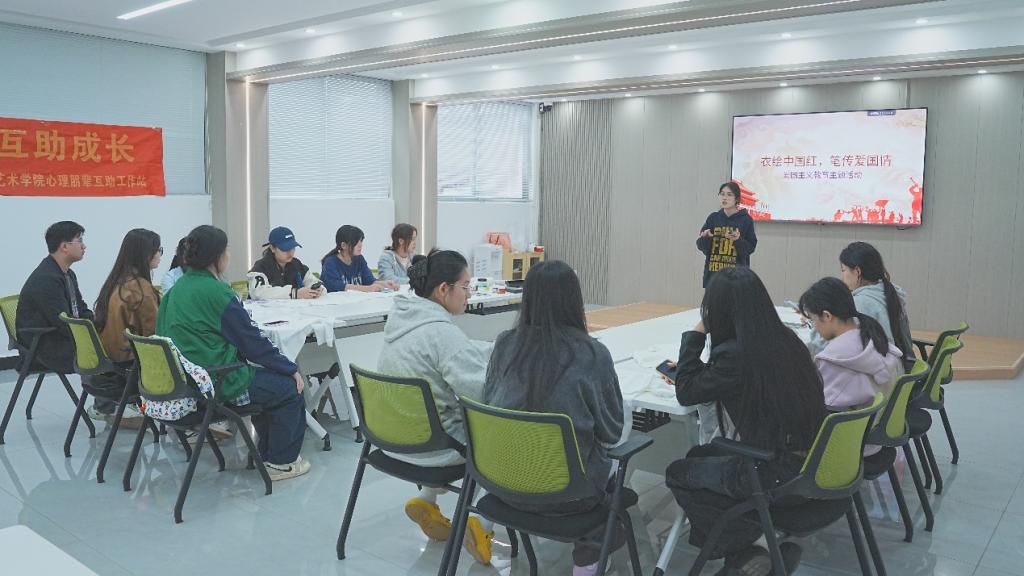 为弘扬爱国主义精神,激发青年学生的爱国热情,10月21日下午,由艺术学院心理朋辈互助工作站与第四学生党支部联合承办的“衣绘中国红·笔传爱国情”爱国主义教育主题绘画活动在学生社区考研规划室顺利举行,40多名同学积极参与。