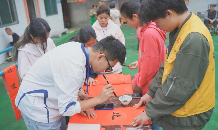 志愿者们还围坐在老人身边,倾听他们讲述往昔故事,和老人们分享校园生活中的趣事。真挚的陪伴驱散了老人们心中的孤独,一位老人感动地说:“孩子们一来,小院里就热闹了,心里比刚出锅的饺子还暖和!”