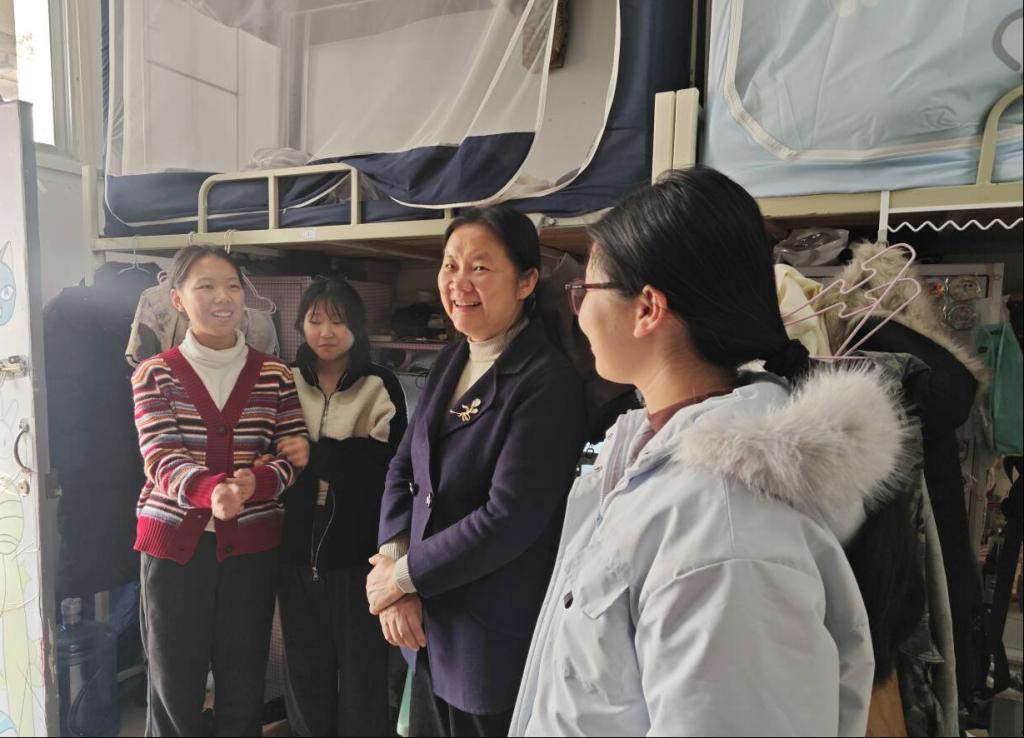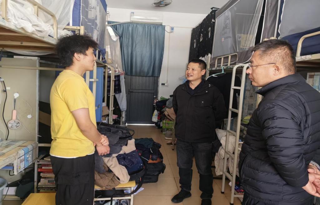 走访过程中,学院领导与辅导员分组对学生宿舍的用电安全、消防设施、卫生环境等进行了细致检查,重点排查了插排使用、电器规范、阳台杂物堆放等安全隐患。学院领导与同学们亲切交流,提醒大家假期期间注意交通安全、防诈骗、冬季用火用电安全等事项,特别强调离校前及时断电、锁好门窗,往返途中做好个人防护,合理安排返程时间,确保平安返校。