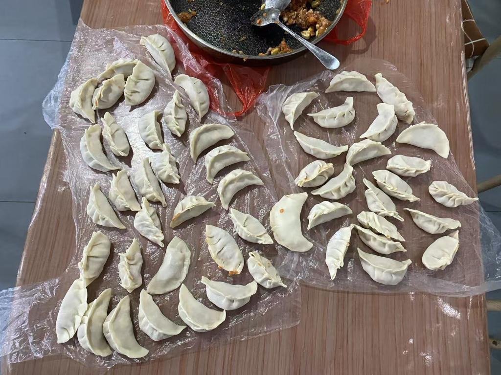 活动伊始,在徐泽老师的带领下,同学们主动分工、默契配合,一部分人围在案板前专注包饺子,另一部分人则在灶台边精心烹制各色菜肴。擀皮、填馅、捏褶,徐泽老师手把手向同学们传授包饺子的技巧,从圆润饱满的元宝饺,到造型别致的柳叶饺,一个个精致的饺子在师生手中快速成型。洗菜、切配、翻炒,灶台旁师生配合默契,大家各展厨艺,将新鲜食材变成一道道色香味俱全的家常菜,香气不断弥漫开来。