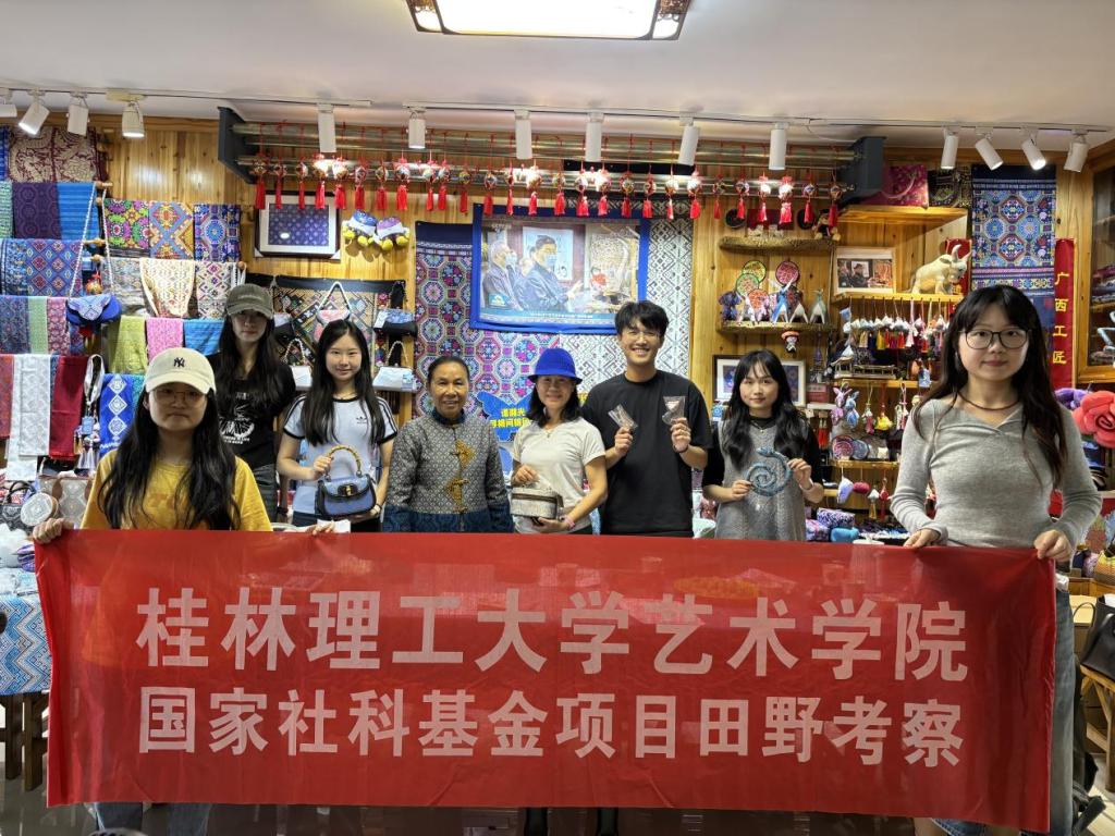 近日,桂林理工大学艺术学院陆众志教授带领国家社科基金项目研究团队,在南宁开展了以“非遗文化旅游产业发展”为主题的考察调研活动。此次调研是深入学习贯彻《中共中央关于制定国民经济和社会发展第十五个五年规划的建议》中关于“推进文化和科技融合,发展新型文化业态”精神的具体实践。团队先后走访了中国工艺美术大师谭湘光壮锦工作室和广西南宁尚象制器文化发展有限公司。在谭湘光工作室,团队围绕“新内涵激活新发展”...