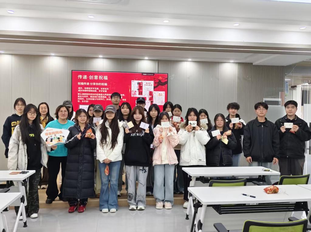 2026年1月15日,艺术学院在10A考研规划室开展了“心信相印·心有所悦”新春明信片书写活动。活动通过营造温馨祥和的节日氛围,弘扬中华优秀传统文化,推进感恩教育,落实立德树人根本任务。活动现场,师生共同观看了国家主席习近平发表的2026年新年贺词,回顾“十四五”成就,展望“十五五”新篇。随后,同学们结合专业特长,在明信片上精心创作,通过笔尖传递对祖国、亲人、朋友及自己的真挚祝福与新年期盼。活动最后,学院为参...